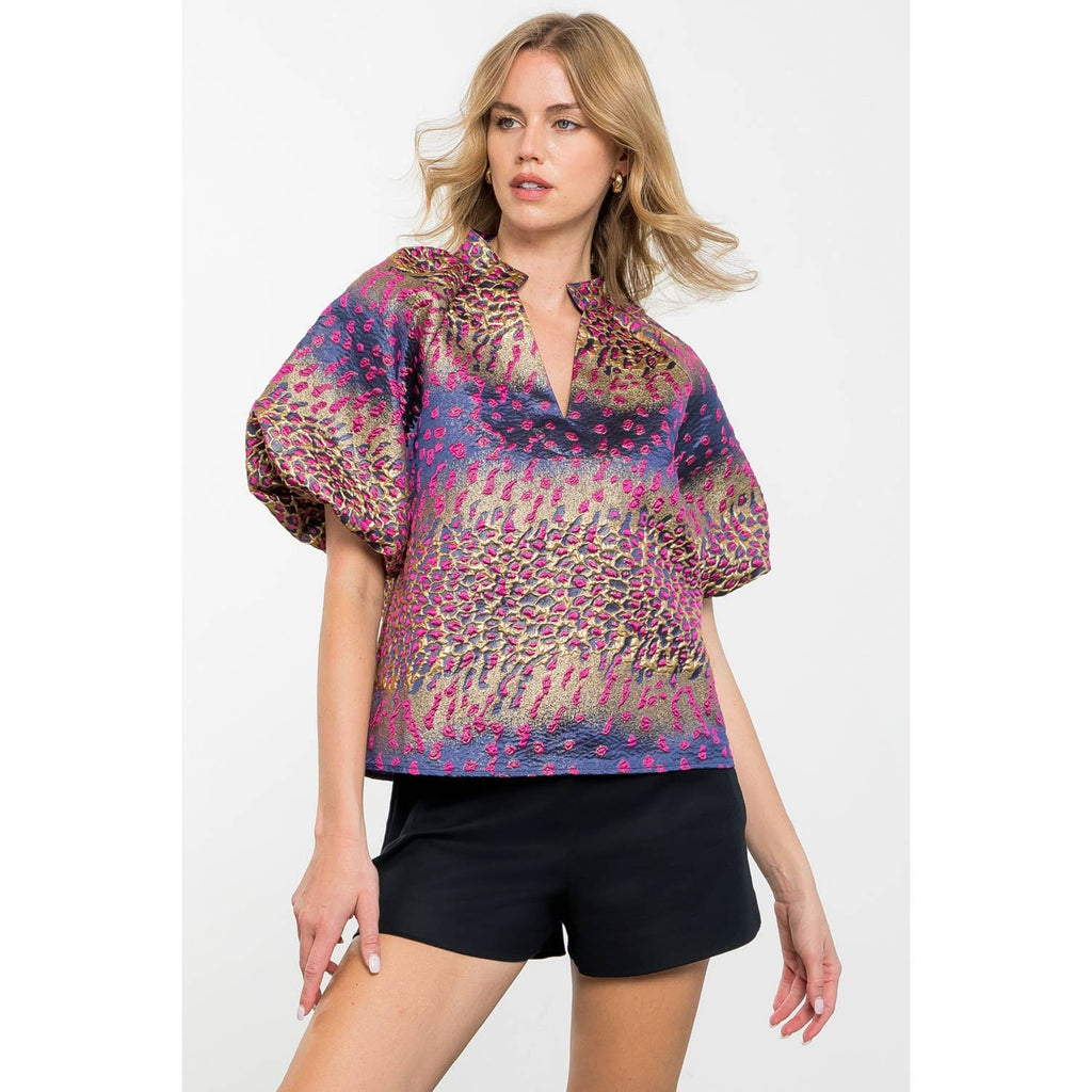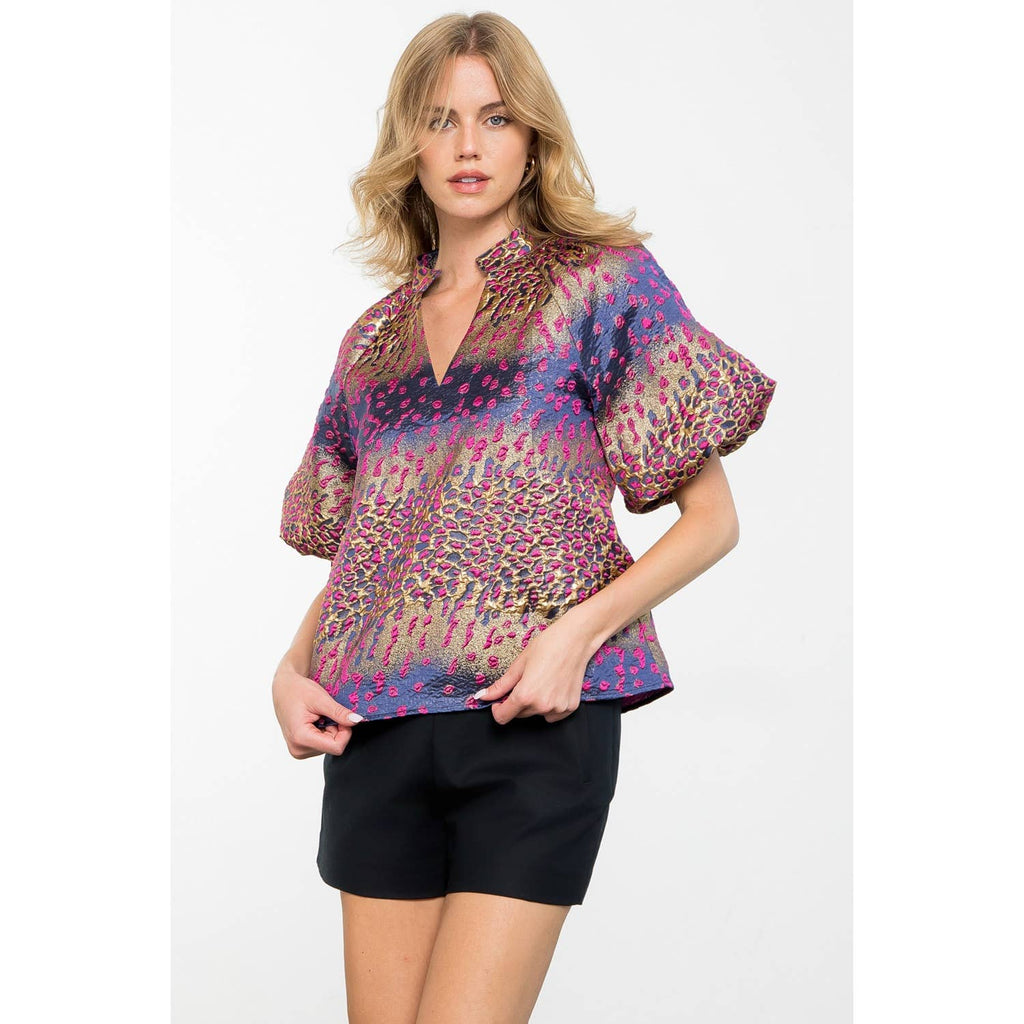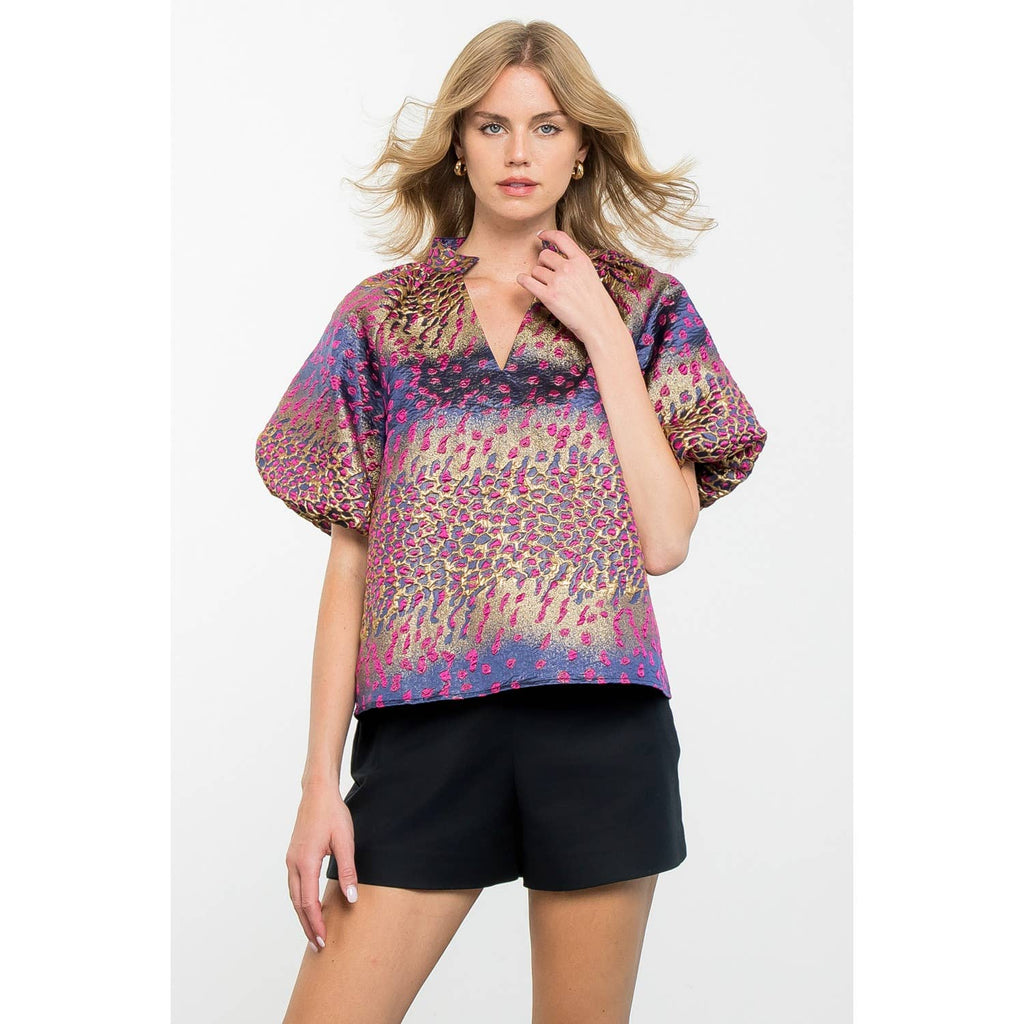 Metallic Detail Bell Sleeve Top