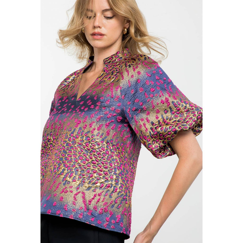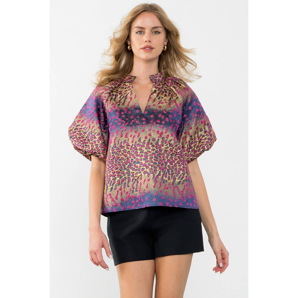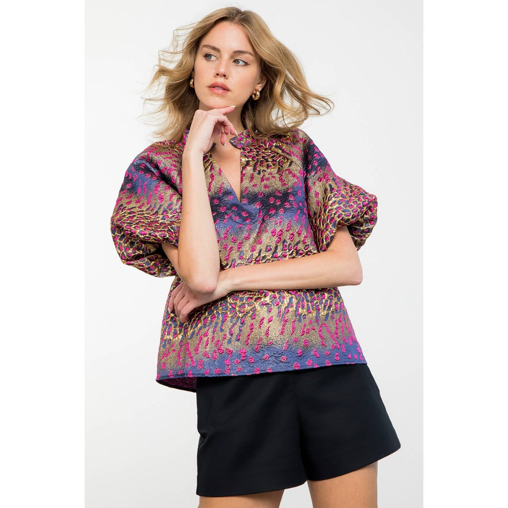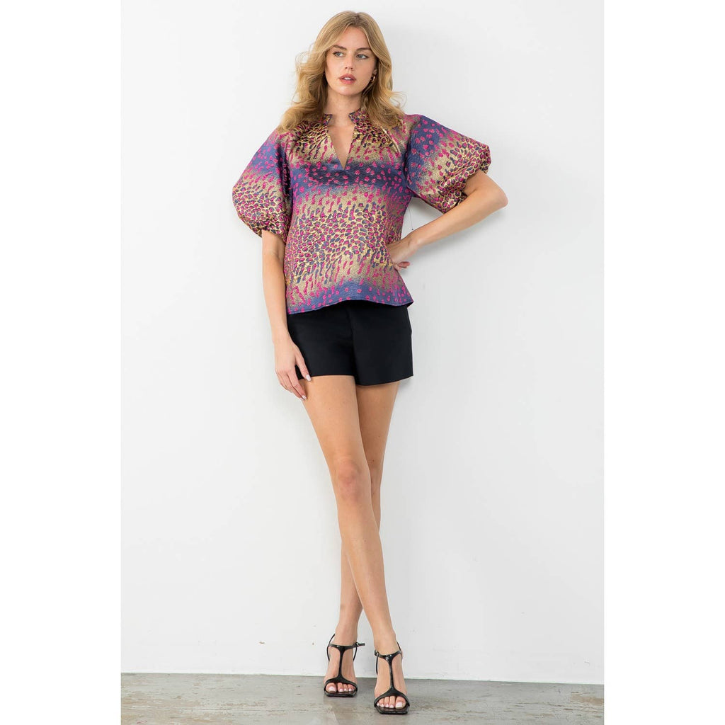 Metallic Detail Bell Sleeve Top