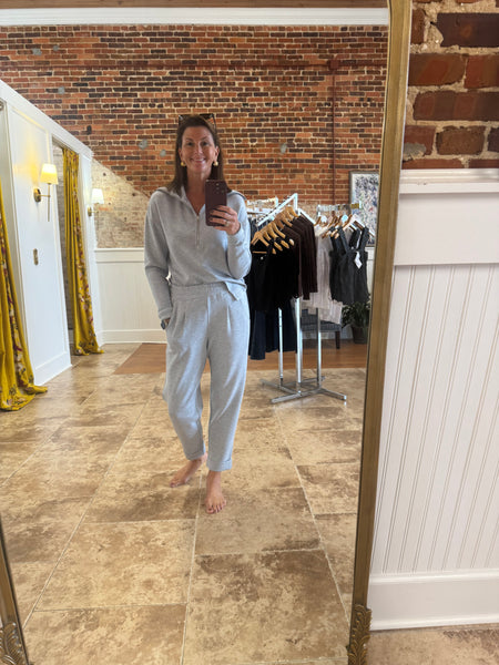 The Larson sweat elevates a classic silhouette with its exaggerated collar, relaxed fit, and longer back hem. With dropped shoulders for an effortlessly chic look, it’s a timeless piece that pairs perfectly with coordinating pants.