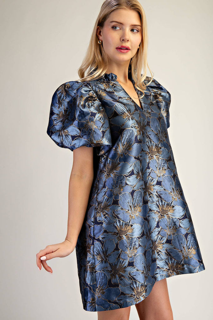 Ruffle V-Neck Puff Sleeve Mini Dress Model Height: 5'8" Wearing Size Small