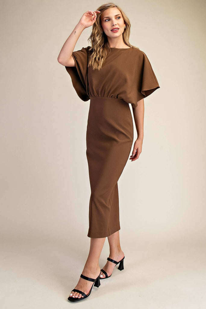Boat Neck Cape Midi Dress Model Height: 5'8" Wearing Size Small