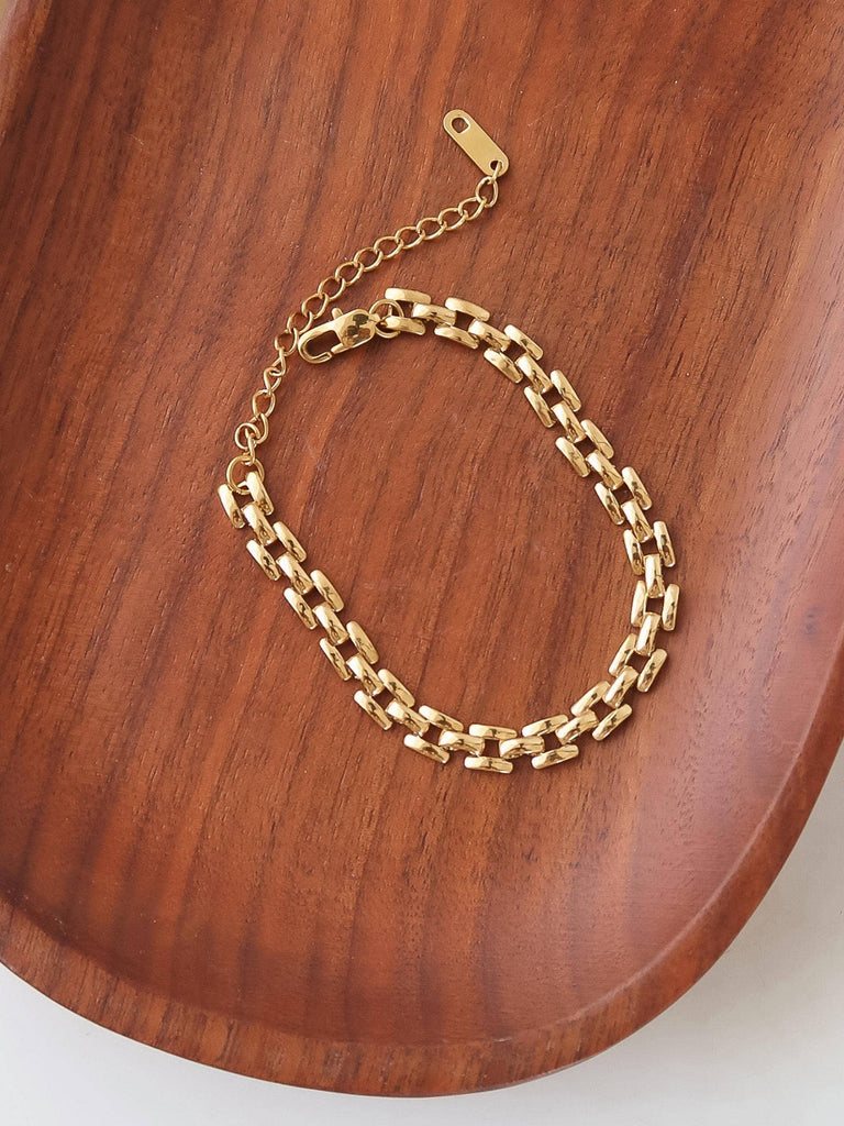 18K Gold Non-Tarnish Flat Chain Bracelet 18K Gold Plating Stainless Steel Measurement ( inch): 6 Extension (inch): 1.5 - Lead-free, Nickel-safe - Hypoallergenic - Water Resistant
