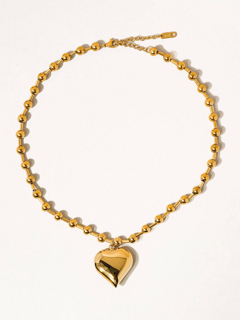 18K Gold Non-Tarnish Large Heart Chain Necklace