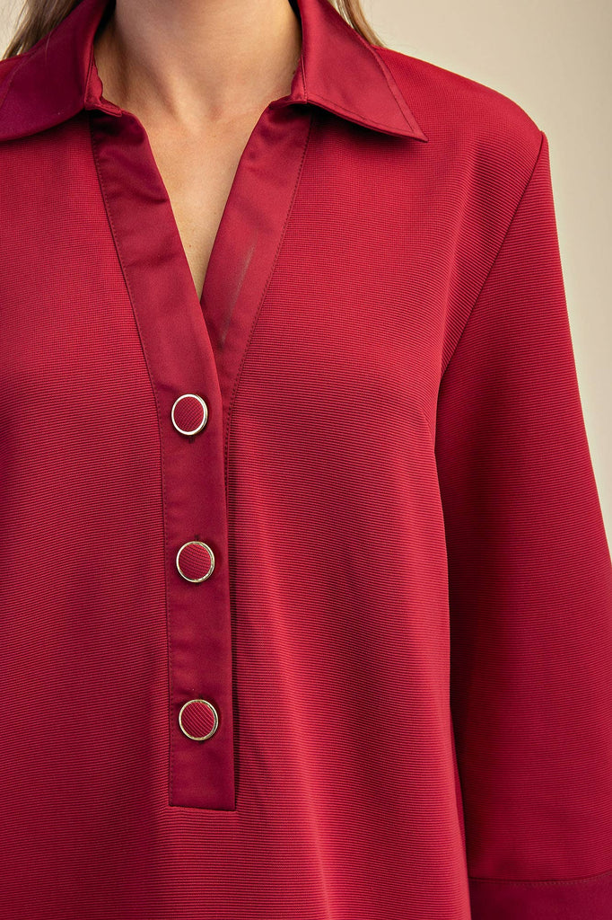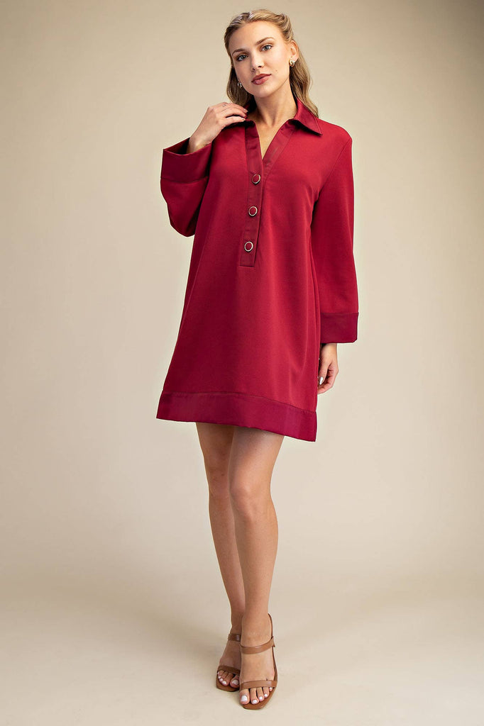 Collar Neck Long Sleeve Mini Dress Model Height: 5'8" Wearing Size Small