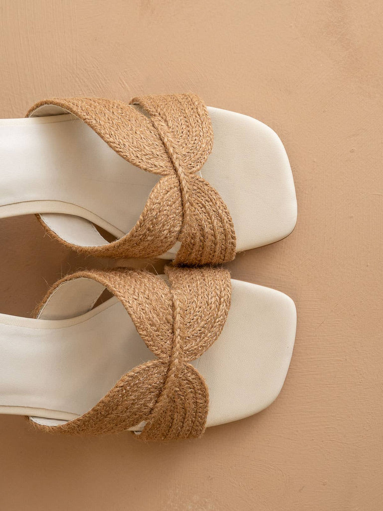 The perfect minimalist raffia heel to go with any summer outfit. Materials: * Upper Material: Raffia Upper * Insole Material: DreamCloud Cushion * Sole or Heel Material: Rubber Outsole,Raffia Wrap Heel Details