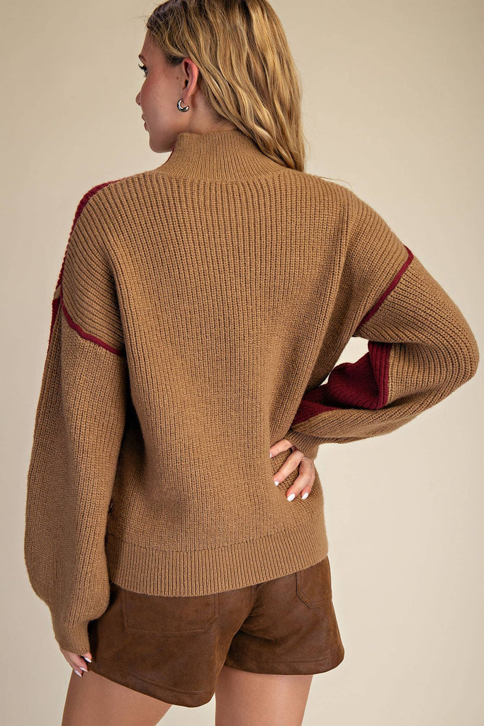 Mock-Neck Long Sleeve Contrast Back Sweater Model Height: 5'8" Wearing Size Small