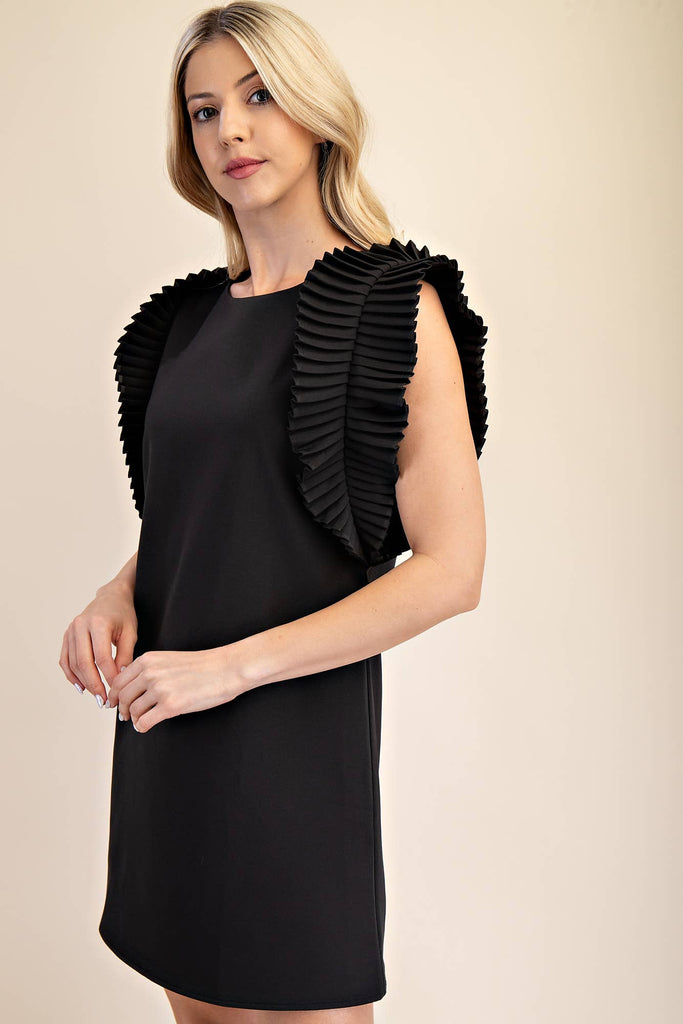Pleated Shoulder Mini Dress Model Height: 5'7" Wearing Size Small
