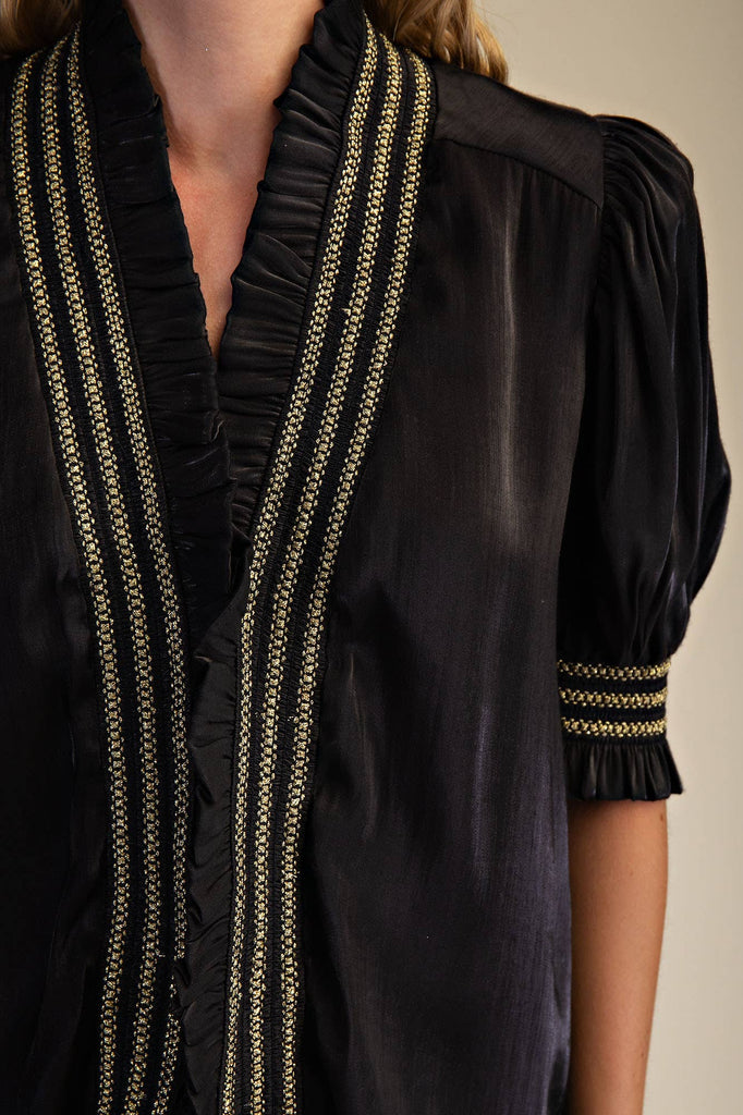 Ruffle V-Neck Smocked Puff Sleeve Blouse Model Height: 5'8" Wearing Size Small