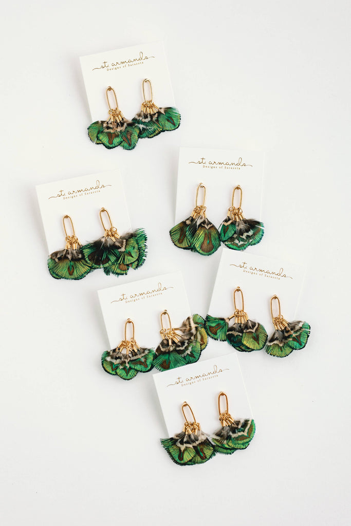 Our newest feather tassel fall statement earrings are adorned with a mesmerizing mallard pattern, featuring hues of green, brown, and iridescent blue. Their lightweight design ensures comfortable wear, while the approximately 2.5-inch length adds an elegant touch. These truly are the perfect fall statement earring!